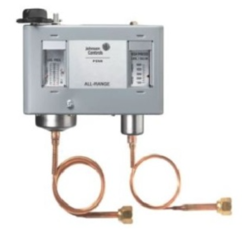 Dual Pressure Control with 36" Capillary, SPST, 6" Hg to 108 psi Low Side, Low Differential 10 to 60 psi, 100 to 465 High Side, 60 psi Fixed Differential, Auto Low/Manual High Reset
