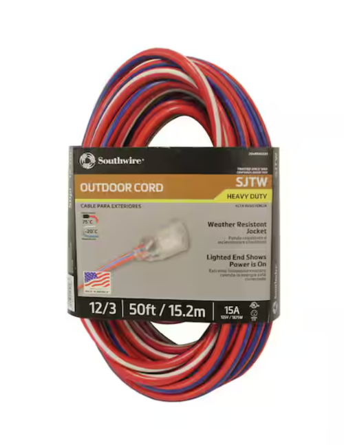 50' 12/3 SJTW USA Outdoor Heavy-Duty Extension Cord with Power Light Plug