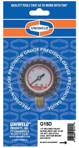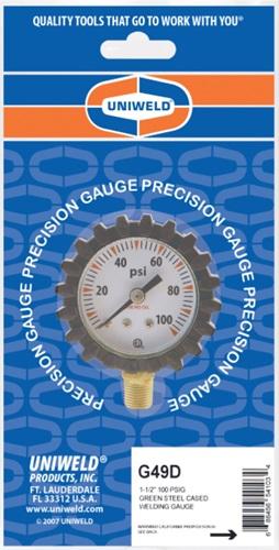 Gauge, 1-1/2 in Dial, 1/4, 1/2, 3/4 Contents, 1/8 in, 400 psi