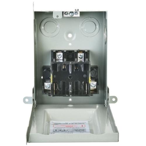 A Pullout Disconnect Switch gives a technician a safe way to work on high-voltage appliances without the need to access the appliance's circuit breaker. The purpose of a disconnect switch is to guarantee that a particular electrical circuit is de-energized in the case of an emergency stoppage, service, or maintenance. The Top Open Disconnect Switch is fused and made of steel for a durable construction.