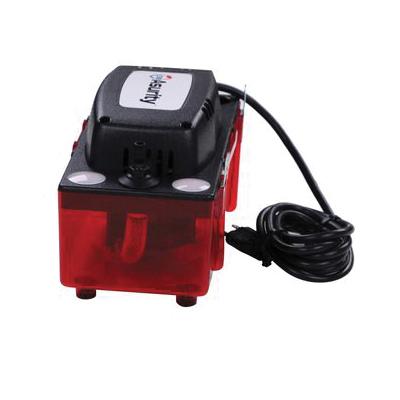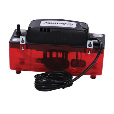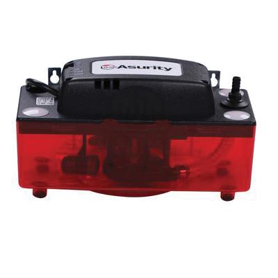 The Asurity® ULTRACP-22T-230 Condensate Pump is a 230 volt pump with 22 ft of lift. It comes with innovative features such as a translucent tank for easy & fast inspection, vibration dampening feet & motor mounts, metal mounting tabs, four inlet holes (and 3 poly covers for the unused), LED indicators, float switch and duckbill-style check valve and detailed installation instructions. Two 1/4in. quick connect terminals provide the installer fast and easy connections to the built-in overflow switch to shut-down the system and prevent flooding, an important safety feature.